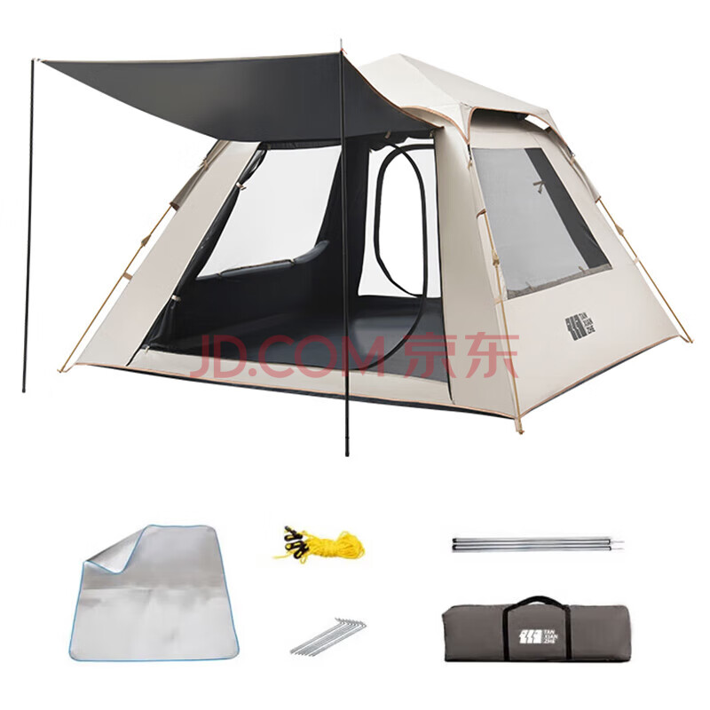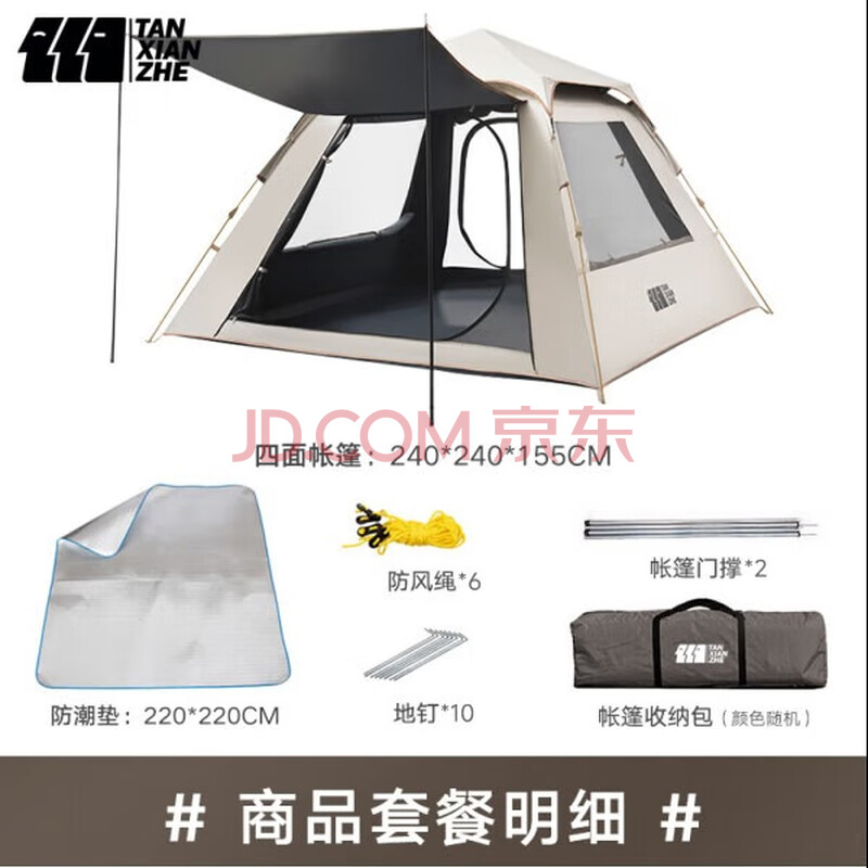 商品相册:TANXIANZHE探险者帐篷4-5人户外全自动便携式露营公园野餐野外黑胶防晒帐篷第1张/共6