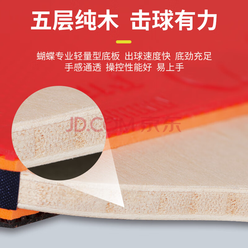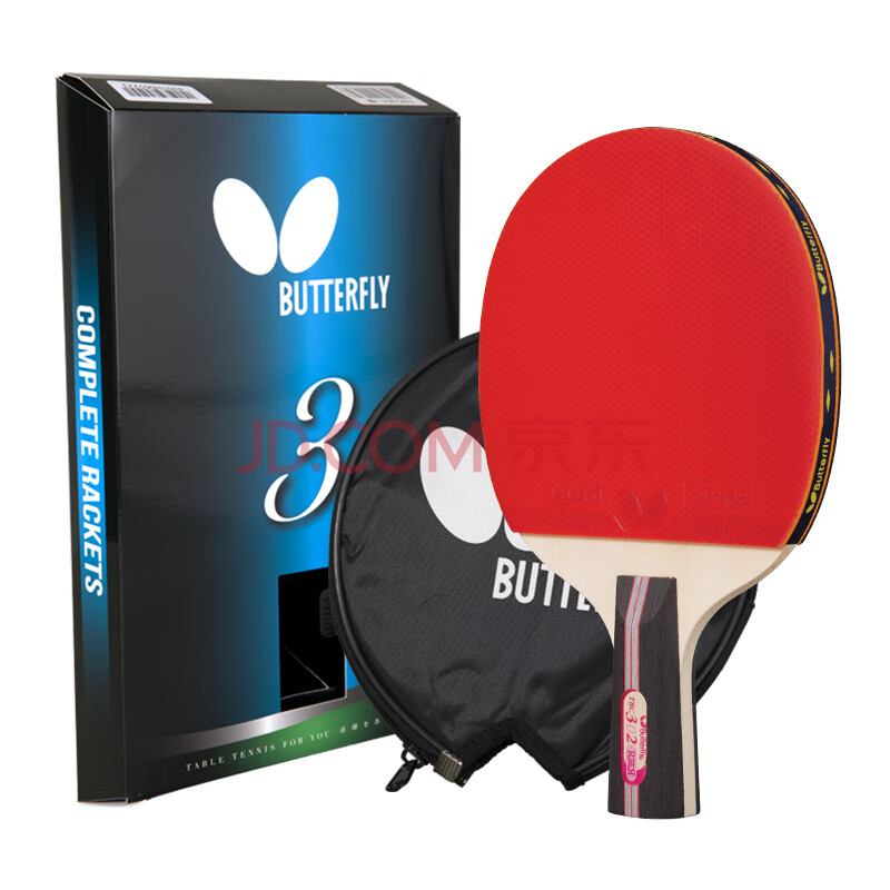 商品相册:蝴蝶(Butterfly)三星级乒乓球拍直拍双面反胶5层合板兵拍单只TBC302 附拍套第