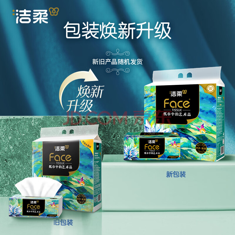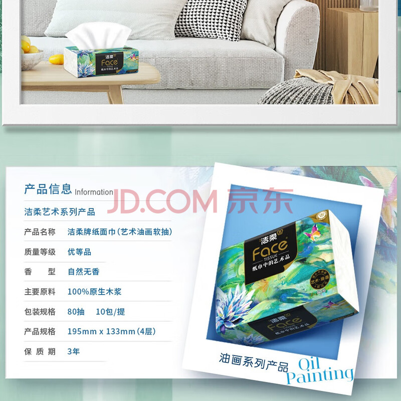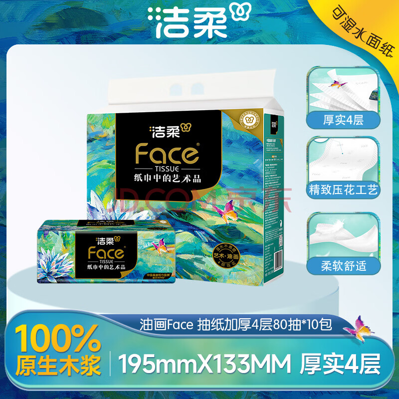 商品相册:洁柔抽纸 艺术油画Face4层80抽*10包 加厚面巾纸 柔软亲肤 大气典雅第