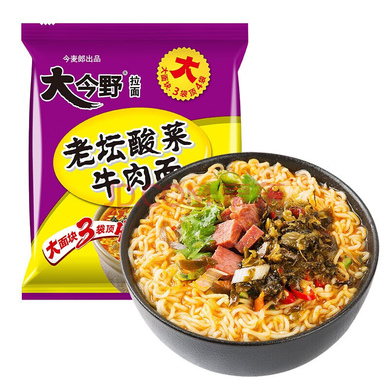 商品相册:今麦郎 大今野 五包老坛酸菜牛肉98g*5袋6包/箱第