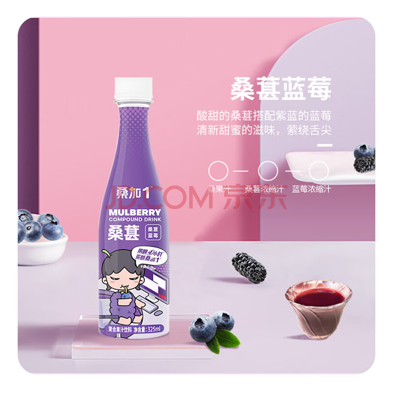商品相册:宝桑园 桑葚果汁饮料 蓝莓味325ml*15瓶/箱第
