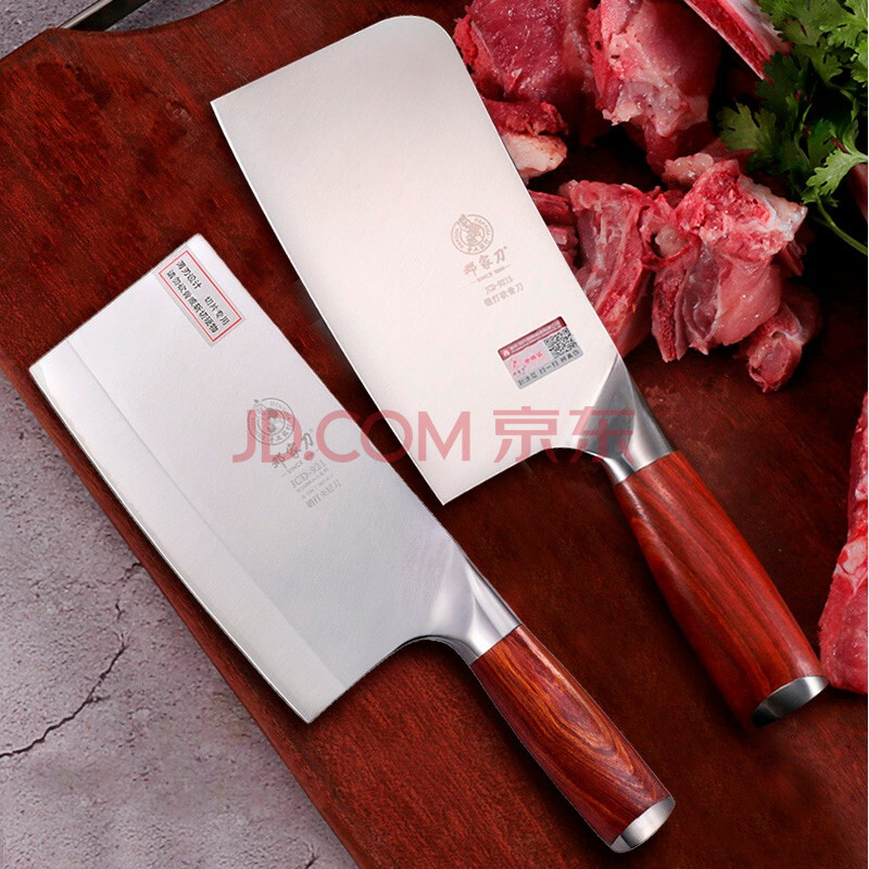 商品相册:邓家刀不锈钢锻打菜刀 9铬切片刀+5铬斩骨刀2件套 2T-04第