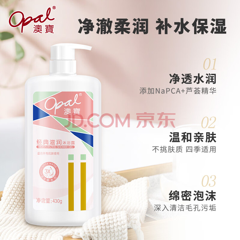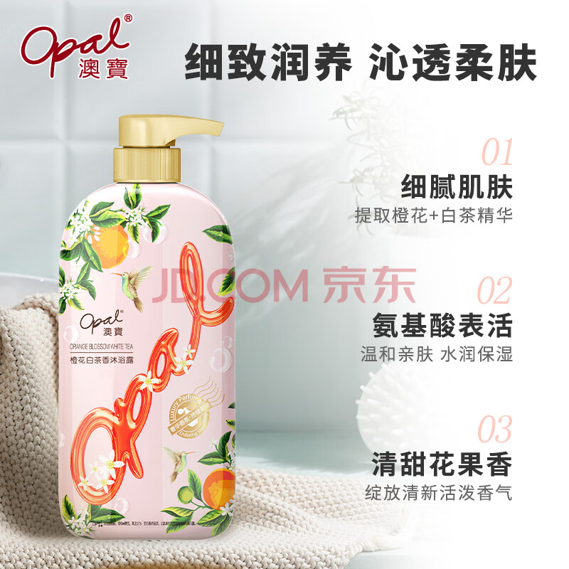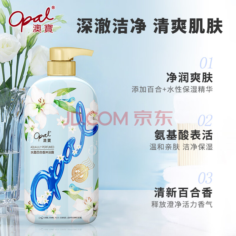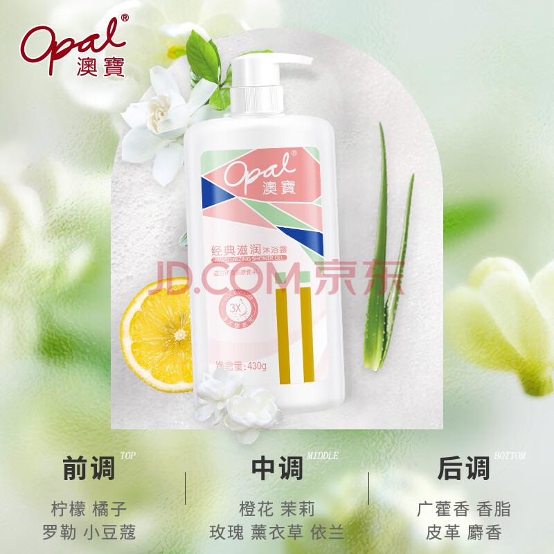 商品相册:澳宝橙花白茶+水盈百合+经典滋润家庭装滋润保湿清洁沐浴露1430g第