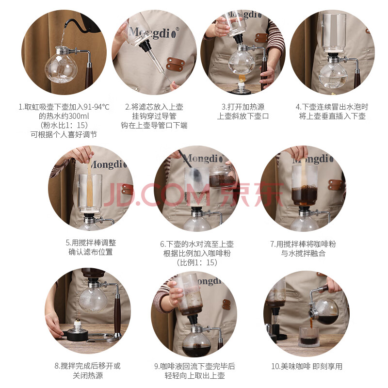 商品相册:Mongdio虹吸壶家用玻璃虹吸式咖啡壶榉木手柄手动咖啡机5人份礼盒装第1张/共9