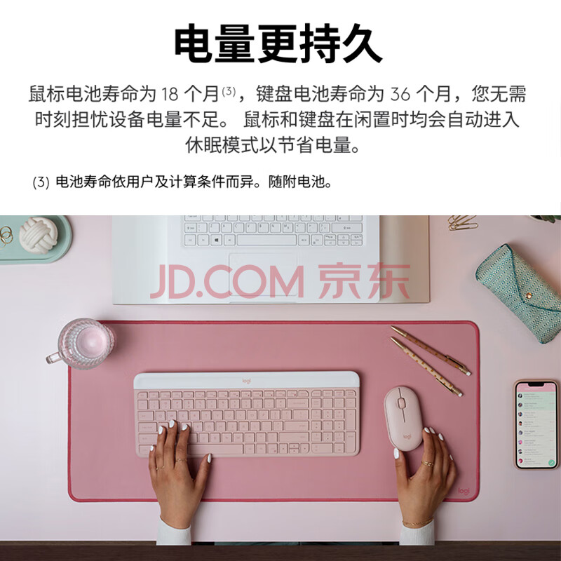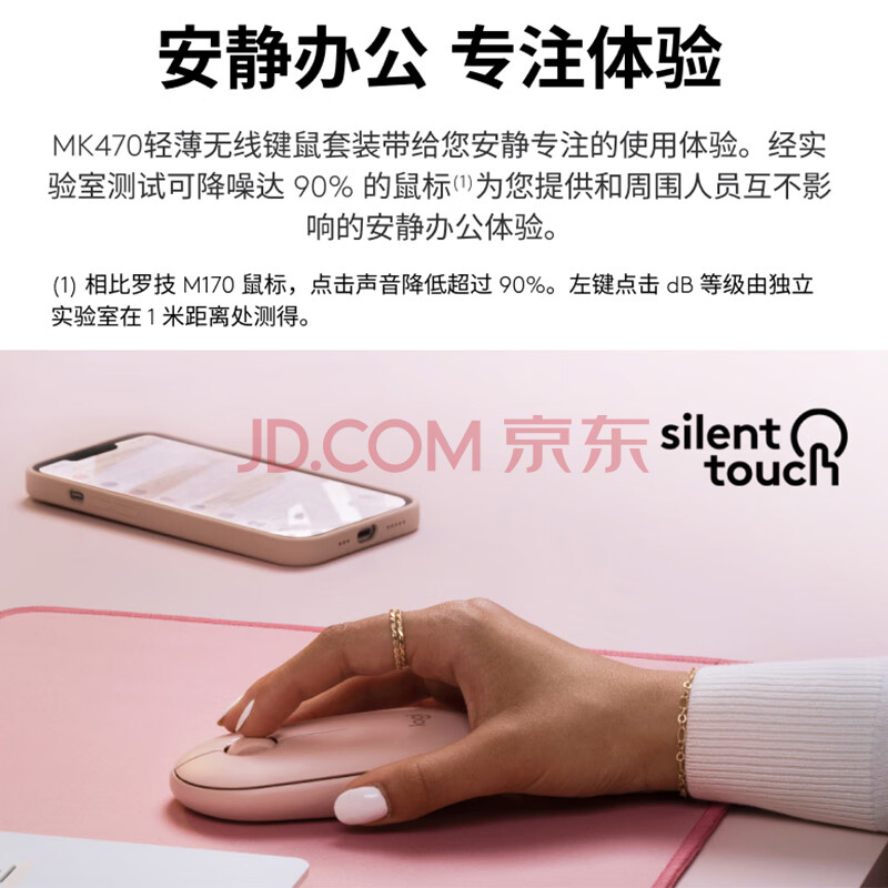 商品相册:罗技(Logitech)时尚系列 MK470 键鼠套装 无线键鼠套装 超薄 全尺寸 玫瑰粉 带无线2.4G接收器第