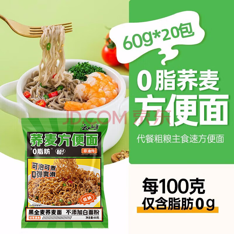 商品相册:云山半速食0脂肪荞麦方便面非油炸荞麦面条免煮泡面代餐饱腹主食60g*20第