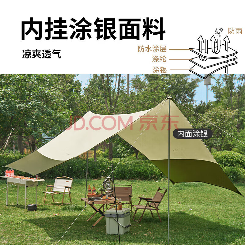 商品相册:WhitePeak 天幕六角户外帐篷涂银防晒遮阳棚营地露营棚可容纳6-8人约20平第