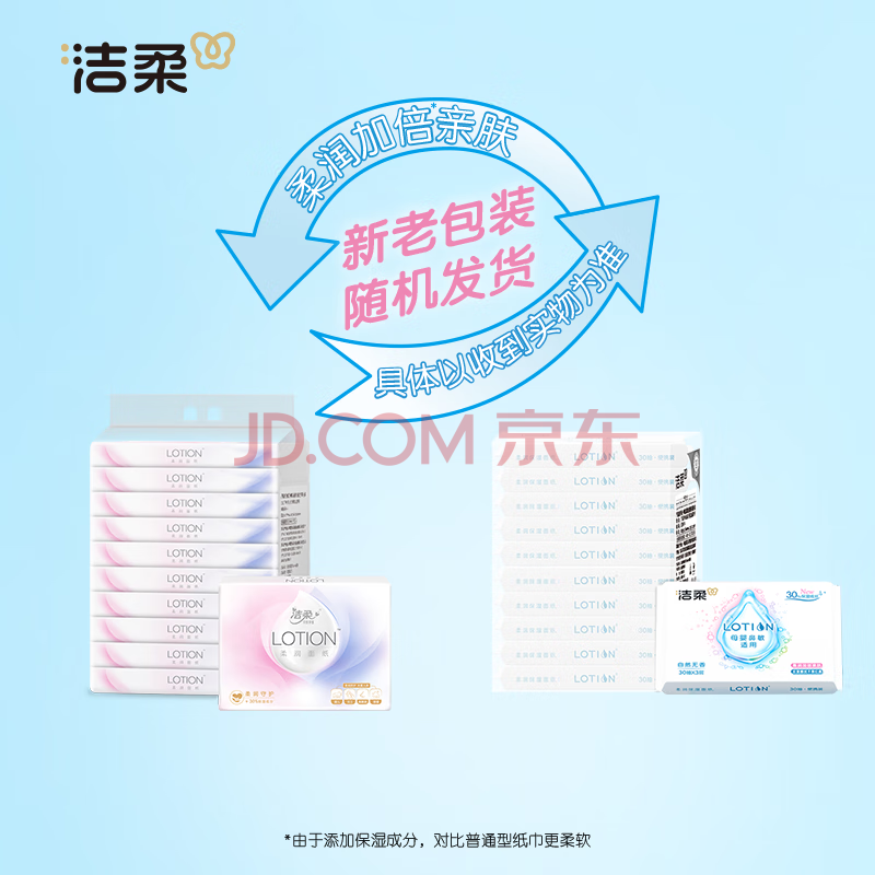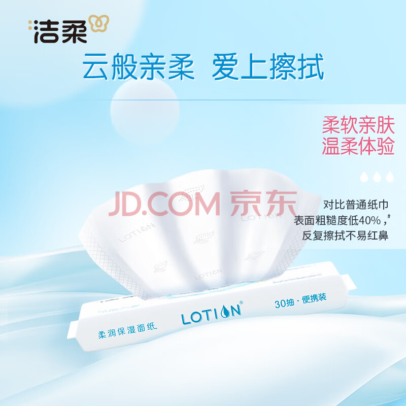 商品相册:洁柔乳霜纸 Lotion3层30抽*10包 保湿抽纸 婴儿纸巾 敏感肌安心用第
