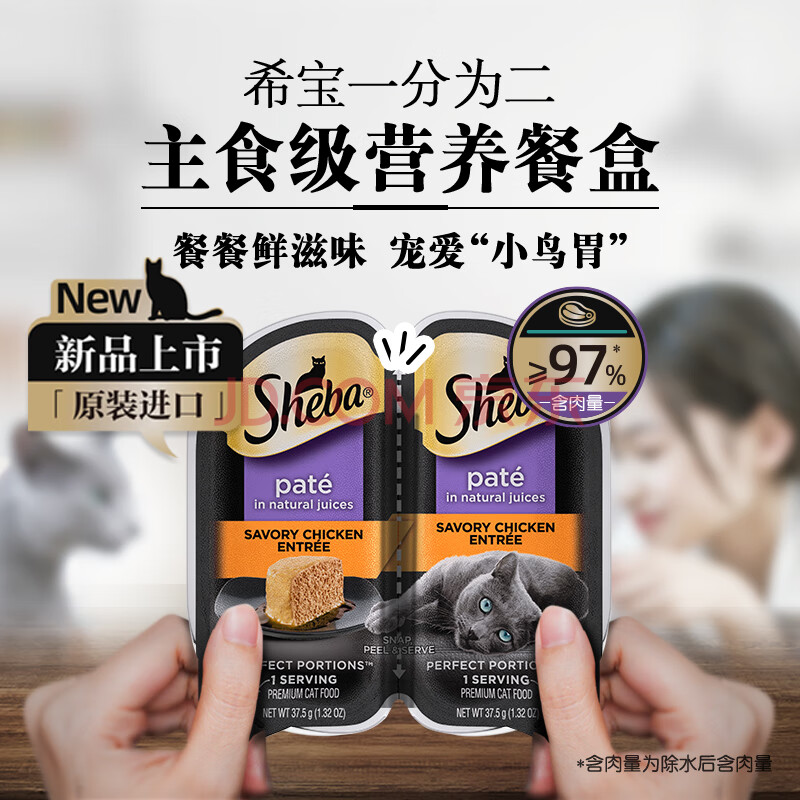 商品相册:希宝(Sheba)一分为二营养餐盒猫主食级罐香嫩鸡肉配方75g单盒猫粮猫零食湿粮第