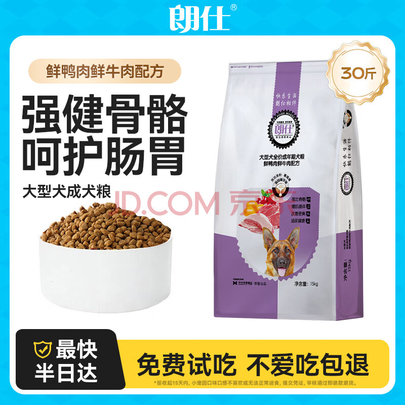 商品相册:朗仕 狗粮 金毛萨摩耶哈士奇德牧大型犬通用型 全价成犬专用狗粮15kg第
