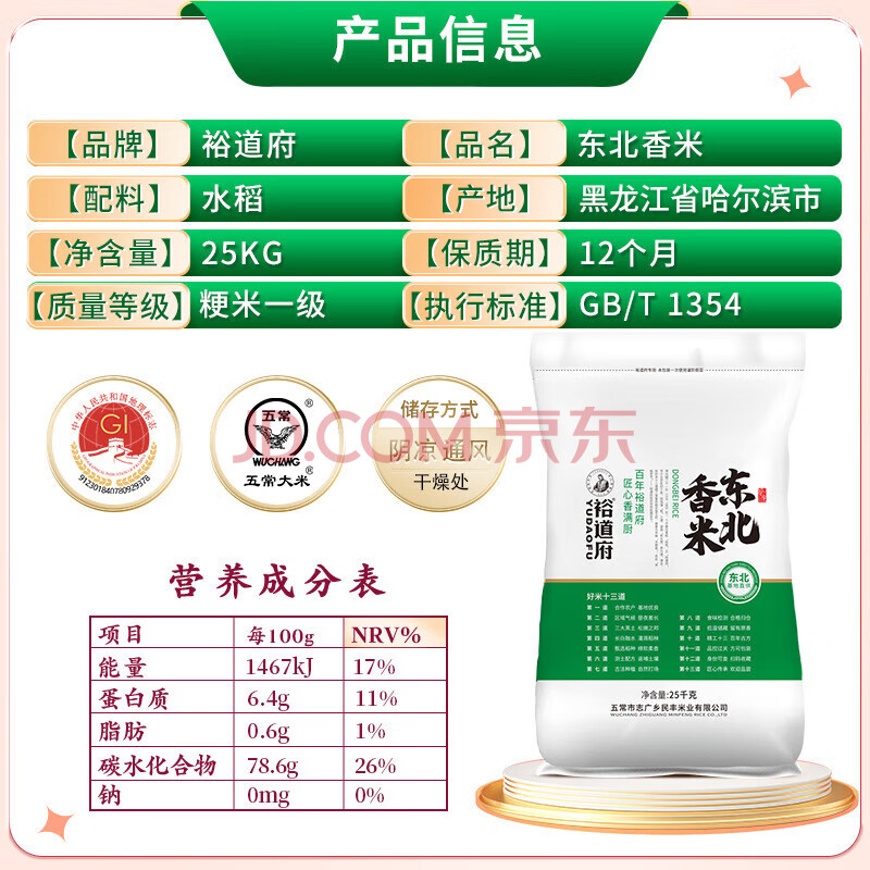 商品相册:裕道府当季新米 东北大米 香米 粳米 25kg 家庭装 50斤装 团购第
