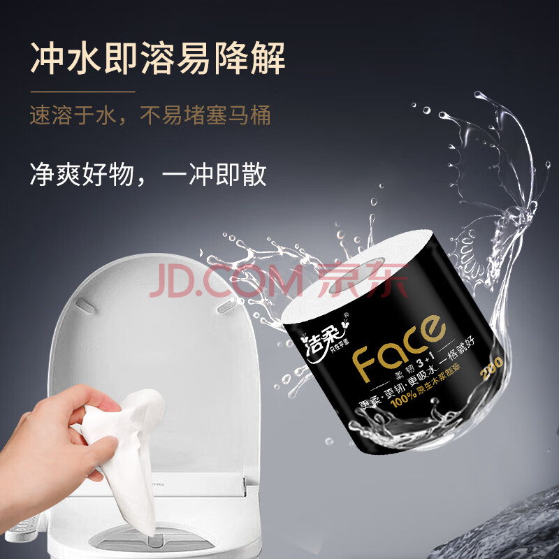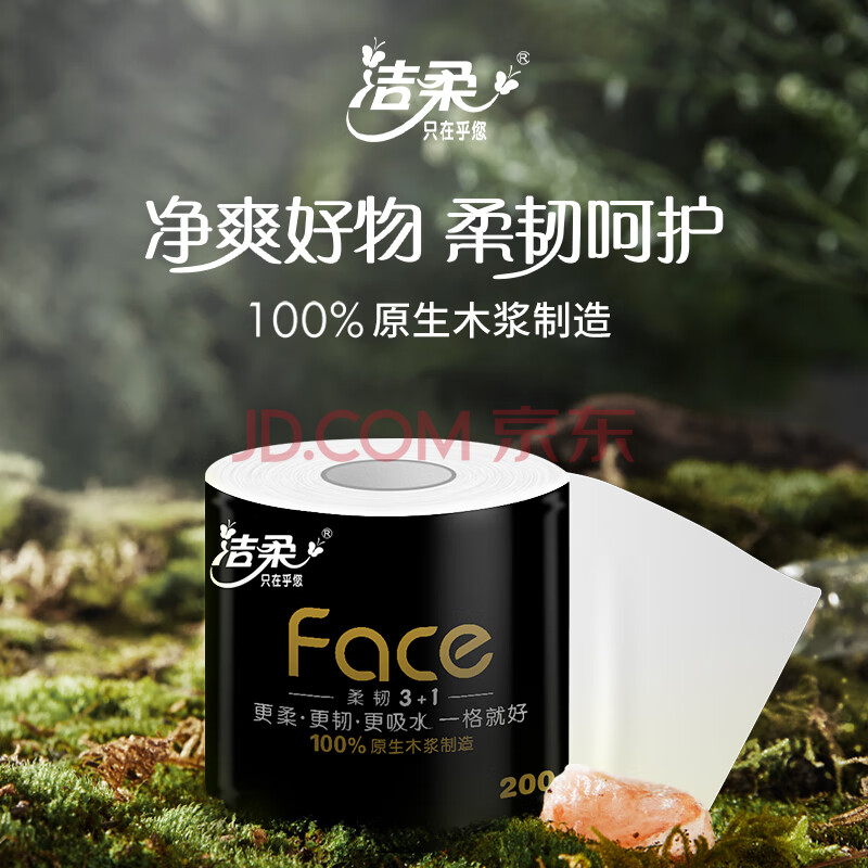 商品相册:洁柔有芯卷纸黑Face4层200克*20卷高克重卫生纸卷筒纸纸巾家庭囤货装第