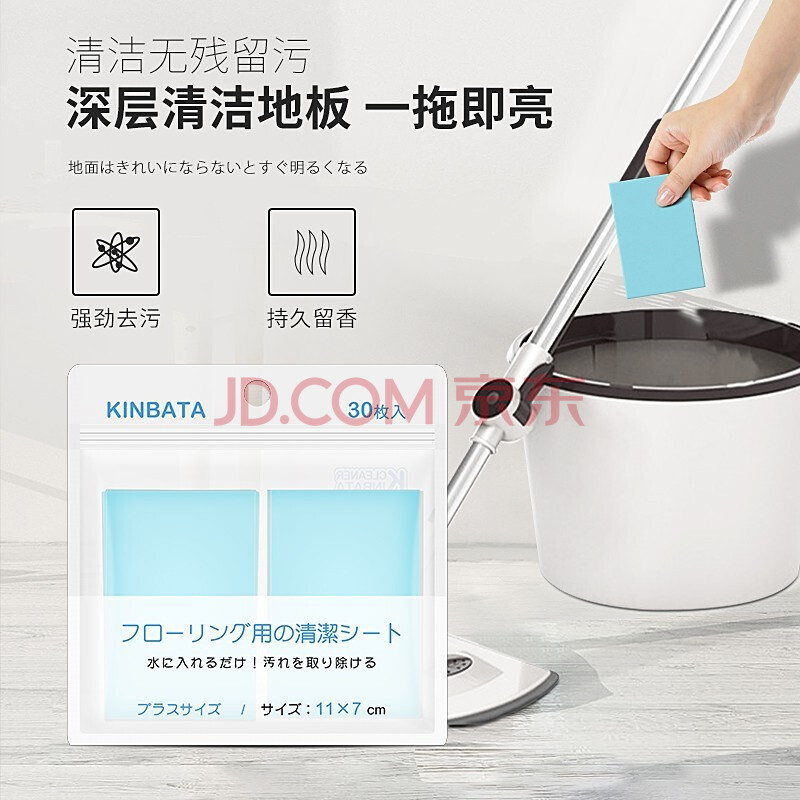 商品相册:KINBATA日本地板清洁片多效清洁强力去污护理增亮家用地板清洁片30片*3包第