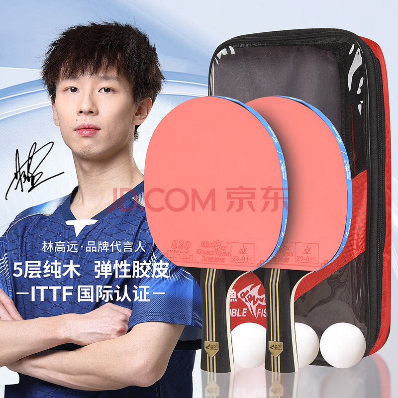 商品相册:双鱼乒乓球拍横拍双拍套装2只装 兵乓球拍双面反胶K339A第