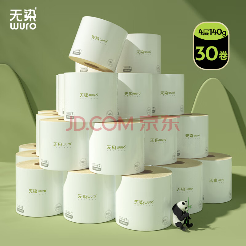 商品相册:无染wuro有芯卷纸 竹浆纸4层140g*30卷 加厚大克重纸巾卫生纸卷筒纸整箱第