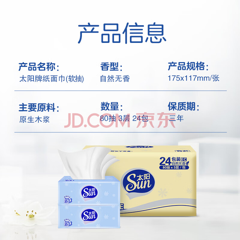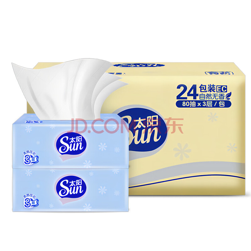 商品相册:太阳(sun)抽纸3层加厚80抽*24包纸巾抽取式面巾纸 源头直发 囤货4000包抽纸第