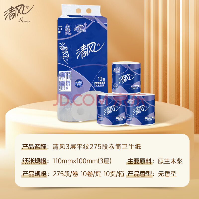 商品相册:清风有芯卷纸 3层275段*100卷 大盘纸 商用商场酒店卫生纸厕纸第