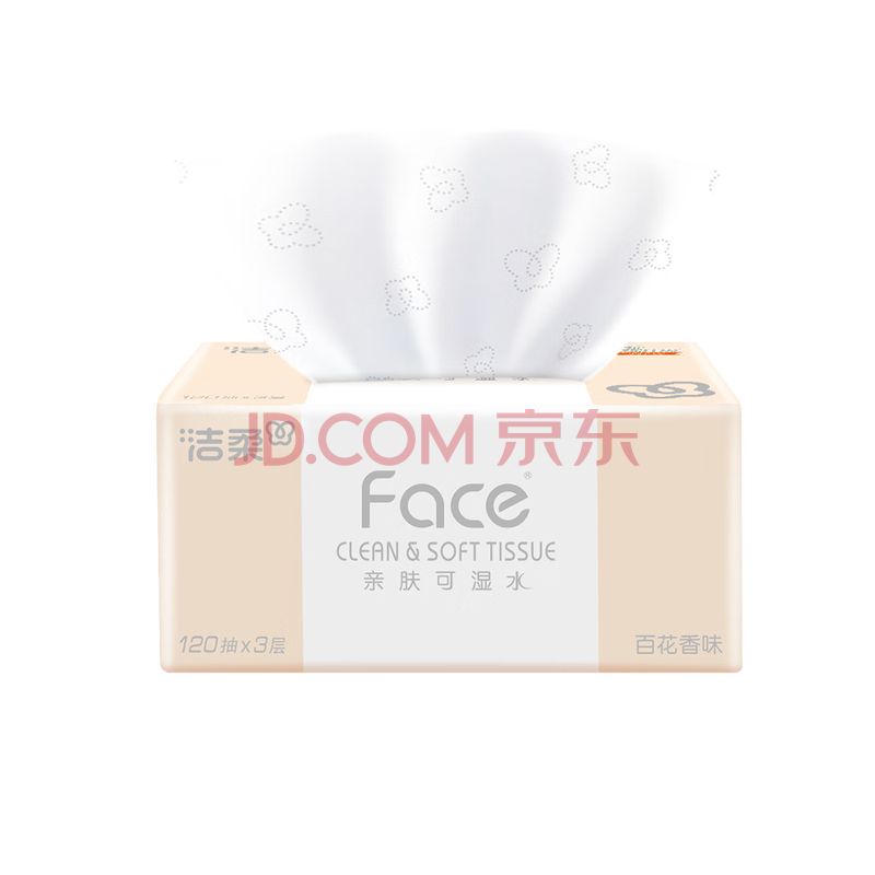 商品相册:洁柔抽纸 粉Face3层120抽*6包 可湿水面巾纸百花香芬 清新怡人第