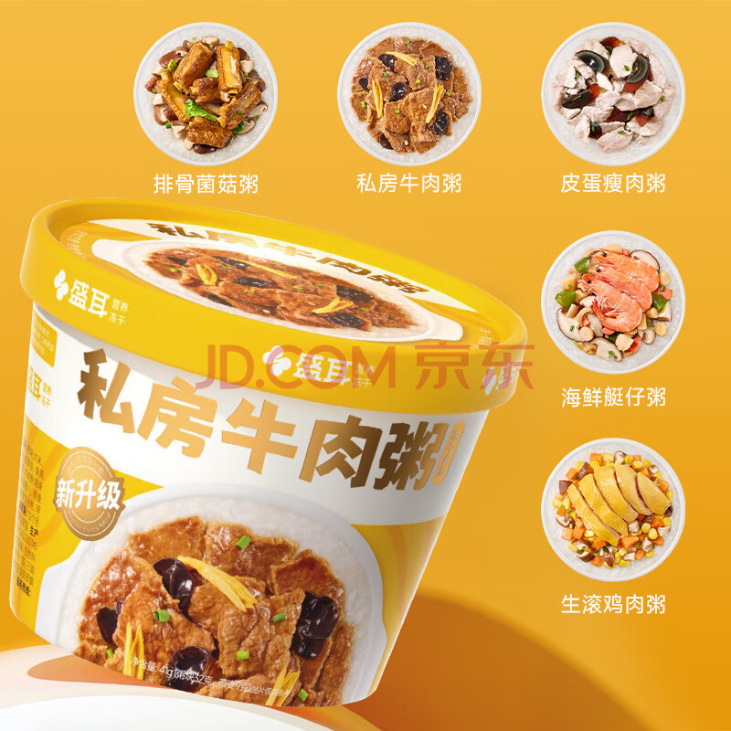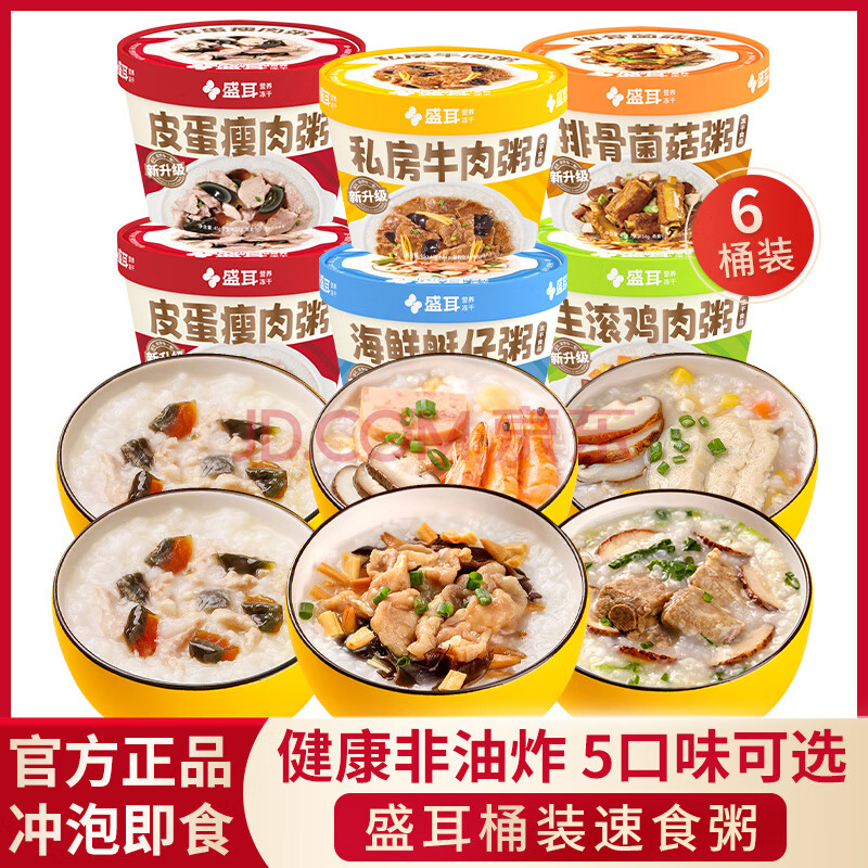 商品相册:盛耳 FD冻干粥方便速食粥 排骨皮蛋牛肉艇仔鸡肉 5口味组合粥238g第