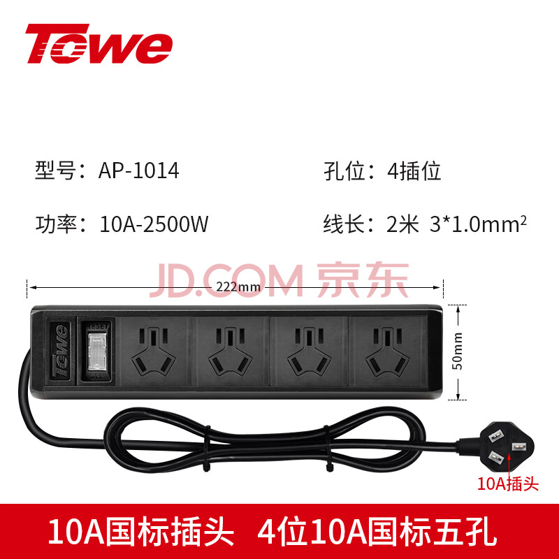 商品相册:TOWE同为经济款总控桌面PDU插座总控排插插线板插座铝合金外壳4位国标10A总控插排 AP-1014第