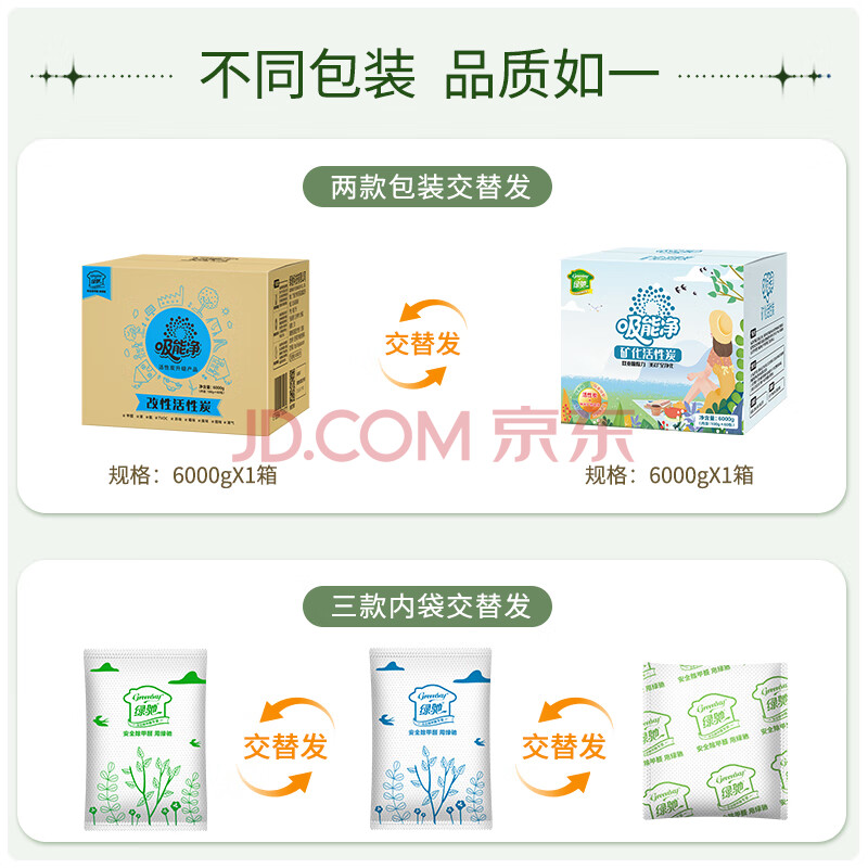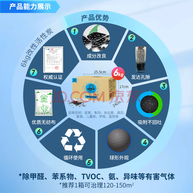 商品相册:绿驰 6kg活性炭去除甲醛清除剂新房汽车吸苯tvoc异味防潮干燥剂竹碳包第