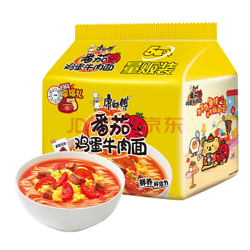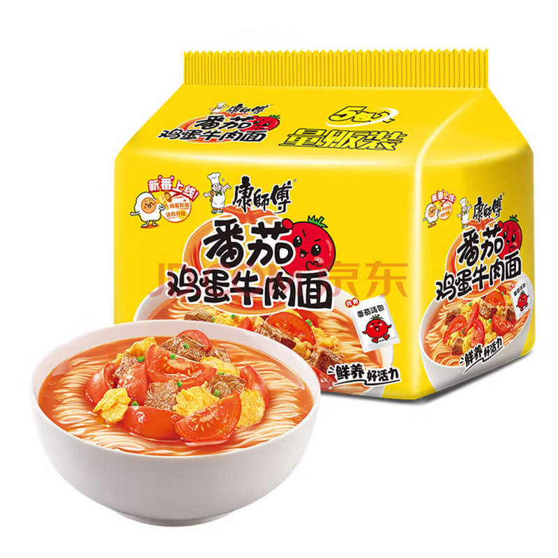 商品相册:康师傅 方便面 经典番茄鸡蛋牛肉面五连包115g*5 泡面袋装速食 方便食品第