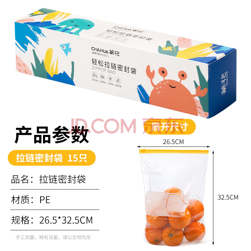 商品相册:茶花 家用拉链密封袋密实袋食品袋收纳分装保鲜袋 超大号15只第