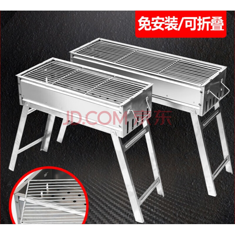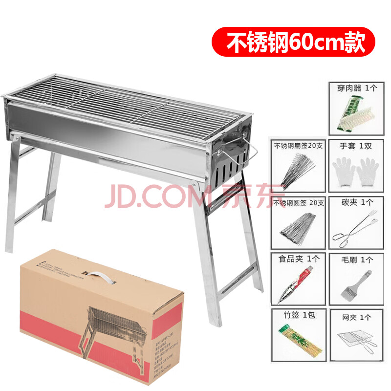 商品相册:极地之光 烧烤架户外家用木炭烧烤炉不锈钢加厚折叠烧烤箱野外烧烤套烤架 62X23X47烧烤架第