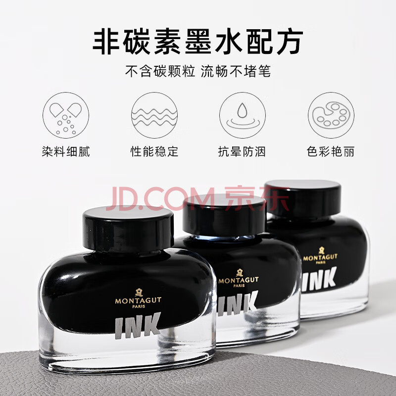 商品相册:梦特娇(MONTAGUT)墨水书写黑色非碳素速干墨水201扁平款30ML第