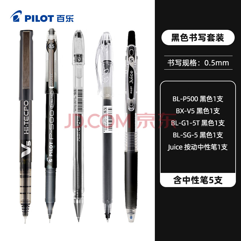 商品相册:百乐(PILOT)黑色中性笔P500/V5/果汁笔/G1/SG针管水笔0.5按动签字笔学生考试笔经典组合文具套装 5支装第