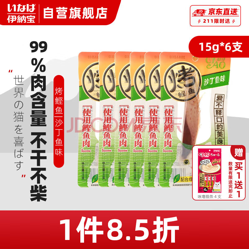 商品相册:伊纳宝猫零食烤鲣鱼条肉干沙丁鱼味15g*6支第