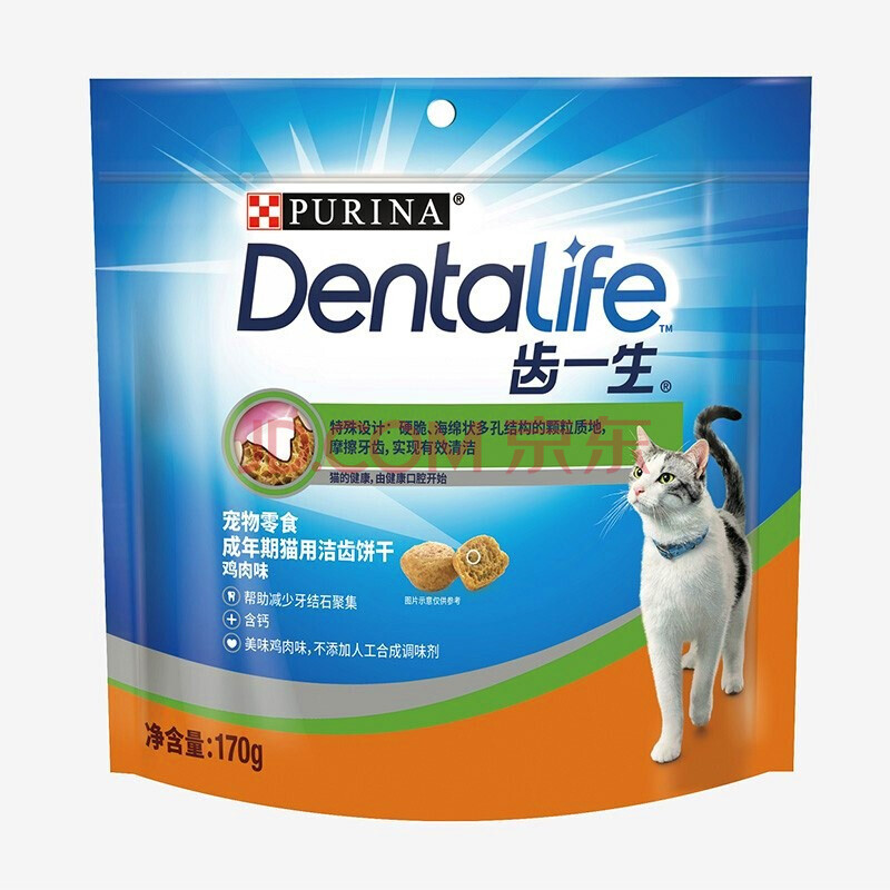 商品相册:齿一生猫零食猫咪饼干洁齿零食成猫 鸡肉味170g 磨牙减少牙结石第
