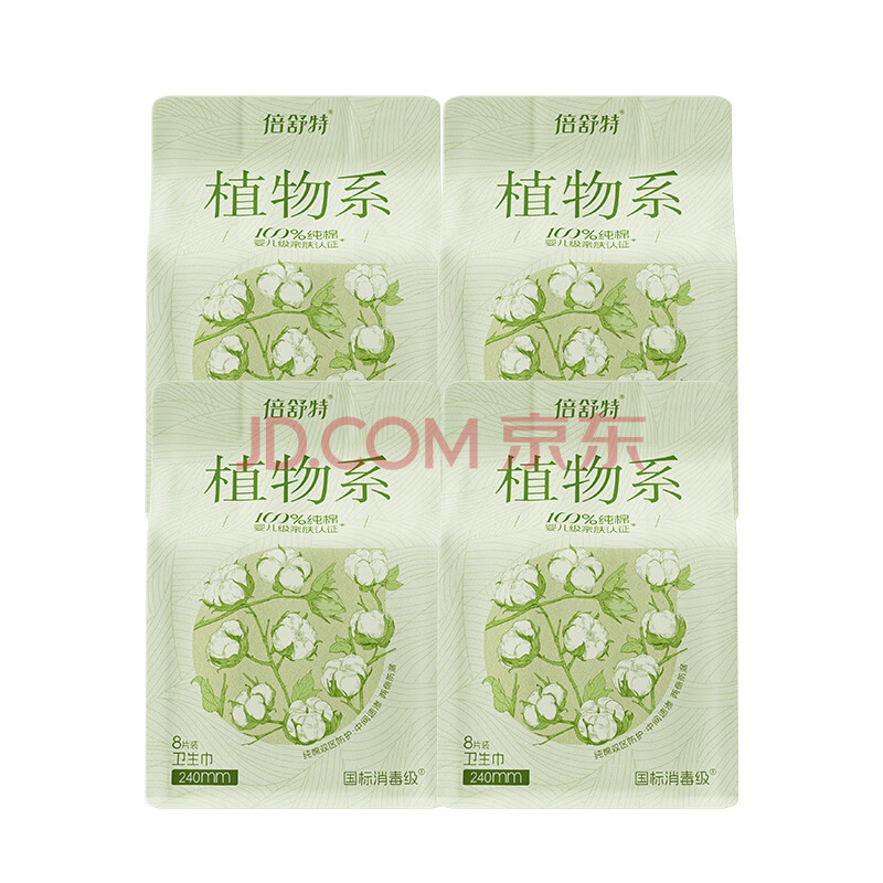 商品相册:倍舒特消毒级 植物系 纯棉抑菌极薄卫生巾日用240mm*32片姨妈巾京东自营第