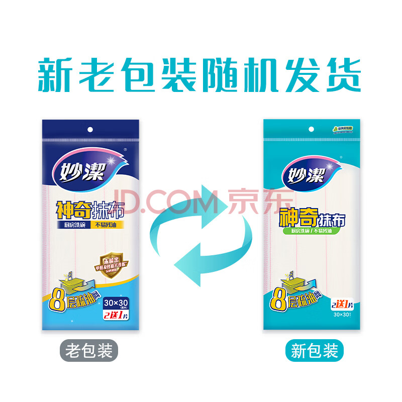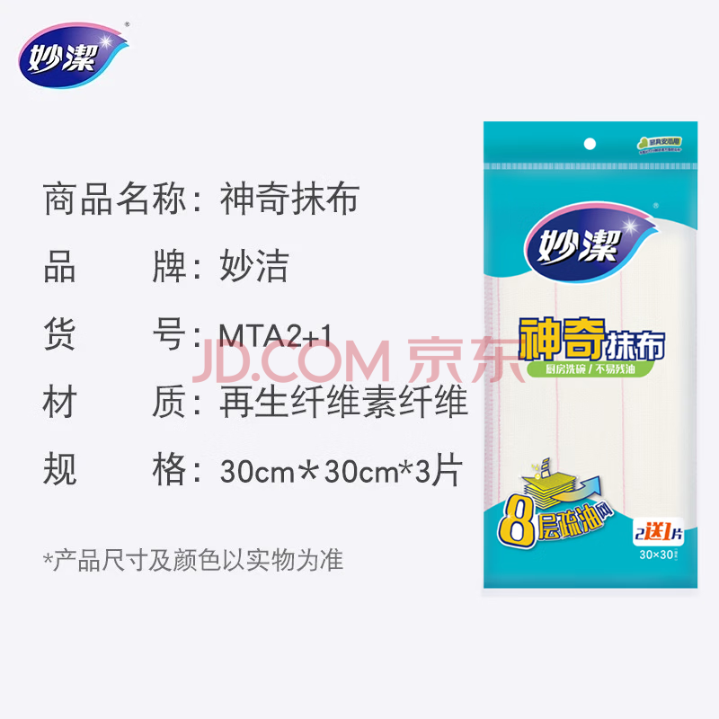商品相册:妙洁神奇抹布30*30cm*3片 厨房洗碗布家用神器 不易残油8层清洁纤维巾第