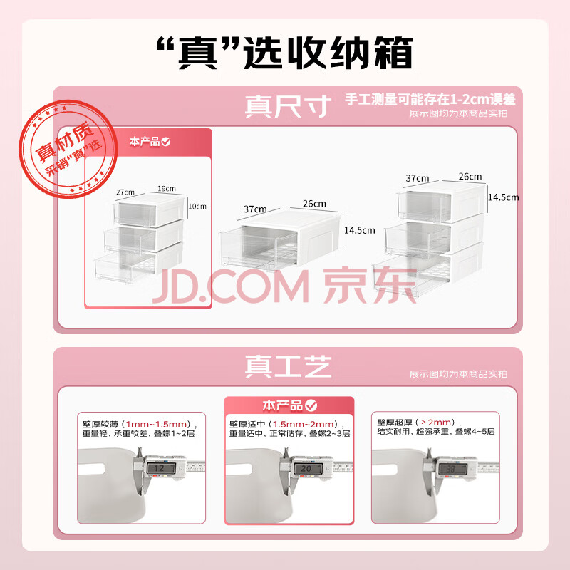 商品相册:SPACEXPERT 衣物收纳箱抽屉收纳盒储物箱 5L透白 3个装第