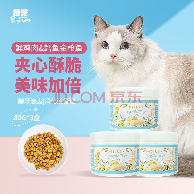 商品相册:最宠(Paddy Time)猫零食夹心猫饼干80g*3鳕鱼益生元 猫薄荷草宠物成幼猫咪磨牙洁齿第