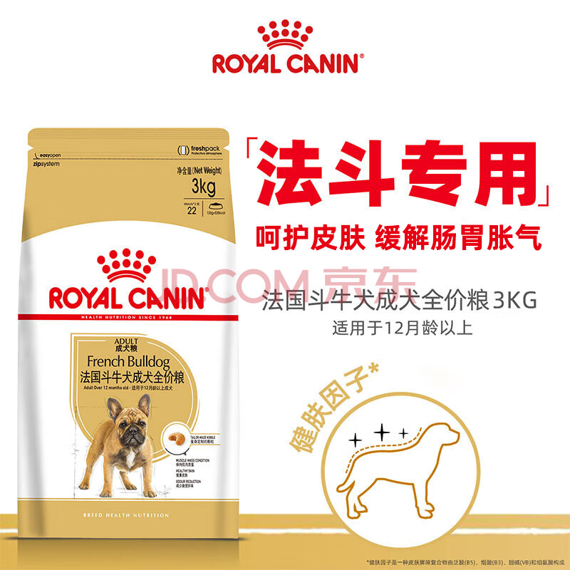 商品相册:皇家狗粮 斗牛犬成犬狗粮 犬粮 宠物中型犬 FBA26 全价犬粮 ≥12月3KG第