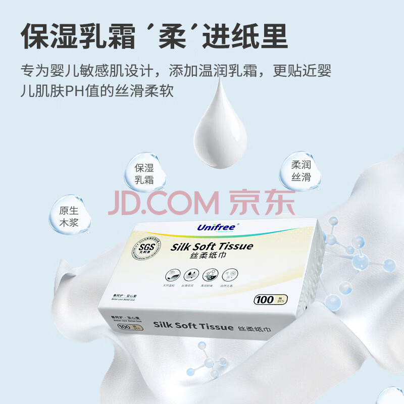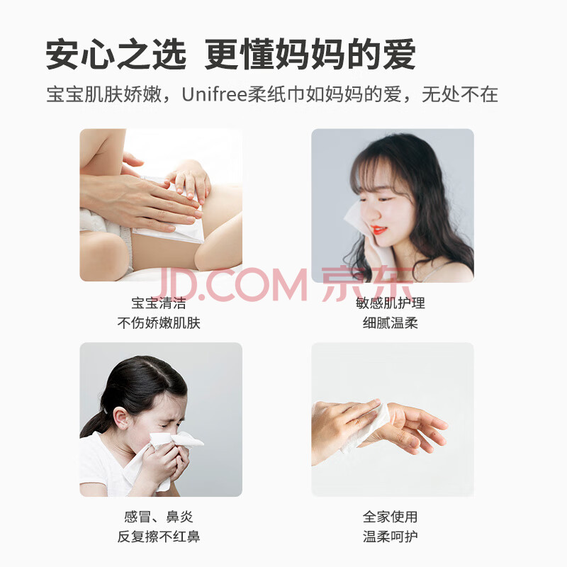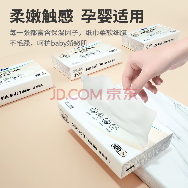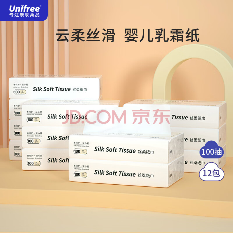 商品相册:unifree抽纸3层100抽*12包 婴儿柔纸巾保湿纸巾 云柔巾 卫生纸 M码整箱第