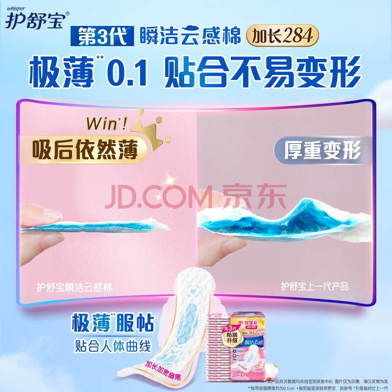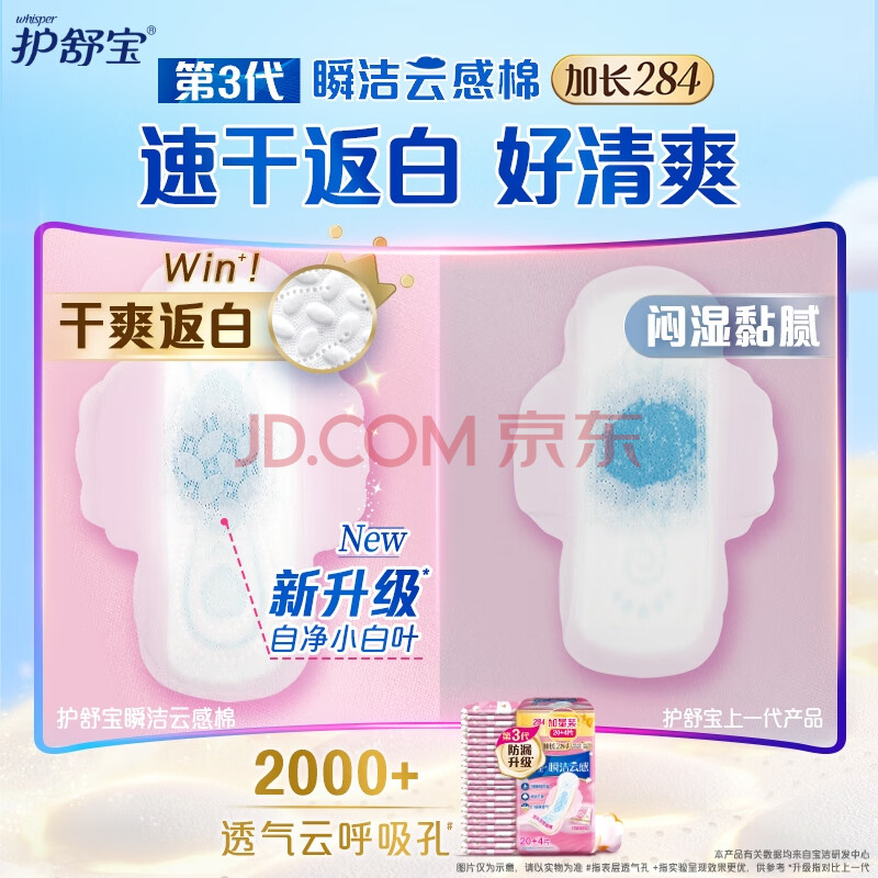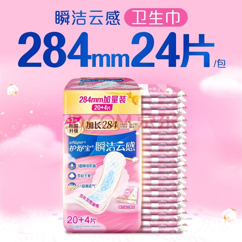 商品相册:护舒宝革新瞬洁云感棉卫生巾量多日用284mm24片姨妈巾京东自营官方旗舰第