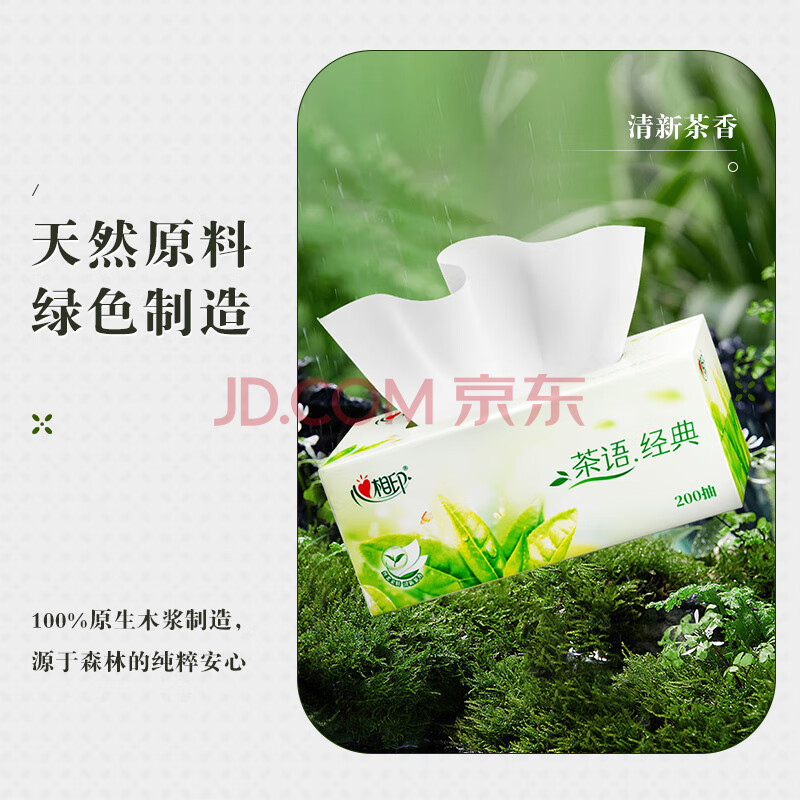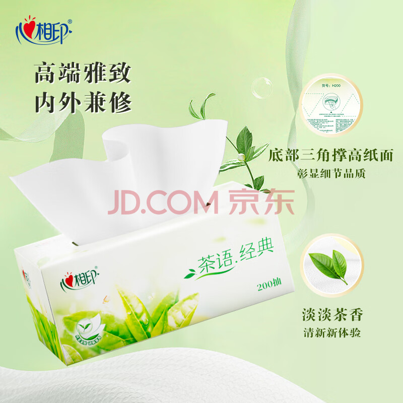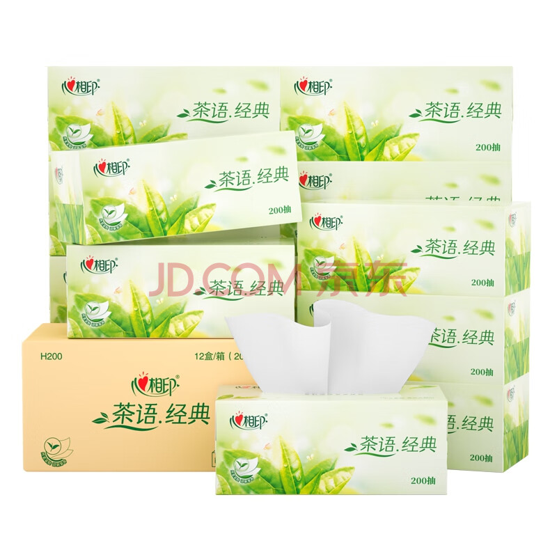 商品相册:心相印抽纸/盒抽 茶语经典 2层200抽*12盒 淡茶香加厚 纸巾 整箱 H200第