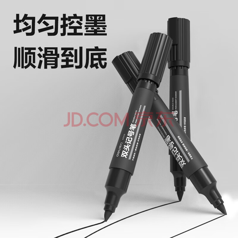 商品相册:得力(deli)大双头粗头物流快递记号笔1.5mm/5.7mm 办公签字学生文具教学会议笔马克笔 10支/盒 黑色 S555第