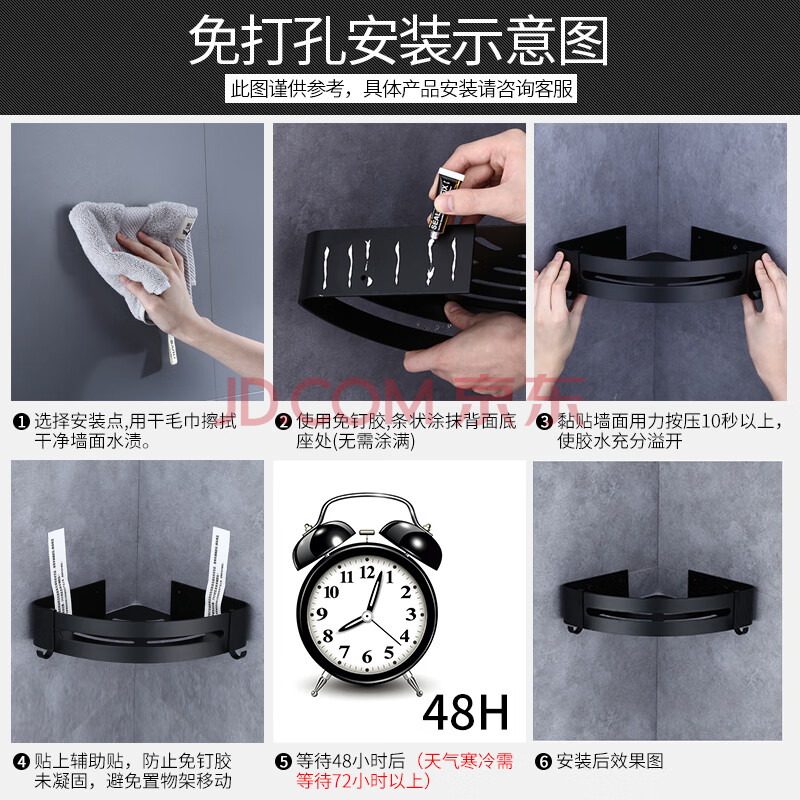 商品相册:虎先森浴室置物架免打孔厕所三角转角架洗手间卫生间置物架厨房壁挂单层第