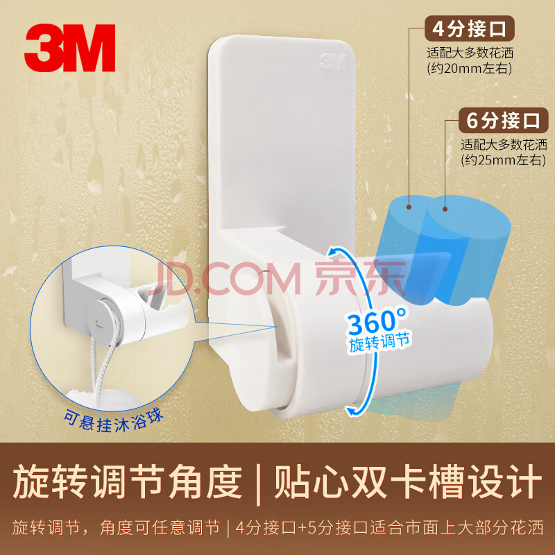 商品相册:3M花洒支架免打孔可调节莲蓬头架淋浴蓬头架子 防水不留痕粘贴牢固第