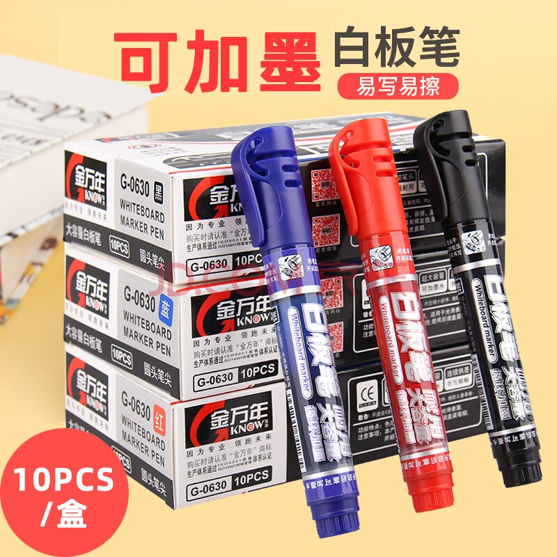 商品相册:金万年白板笔可加墨 直液式大容量 可擦易擦文具-黑色 10支装 G-0630-001第