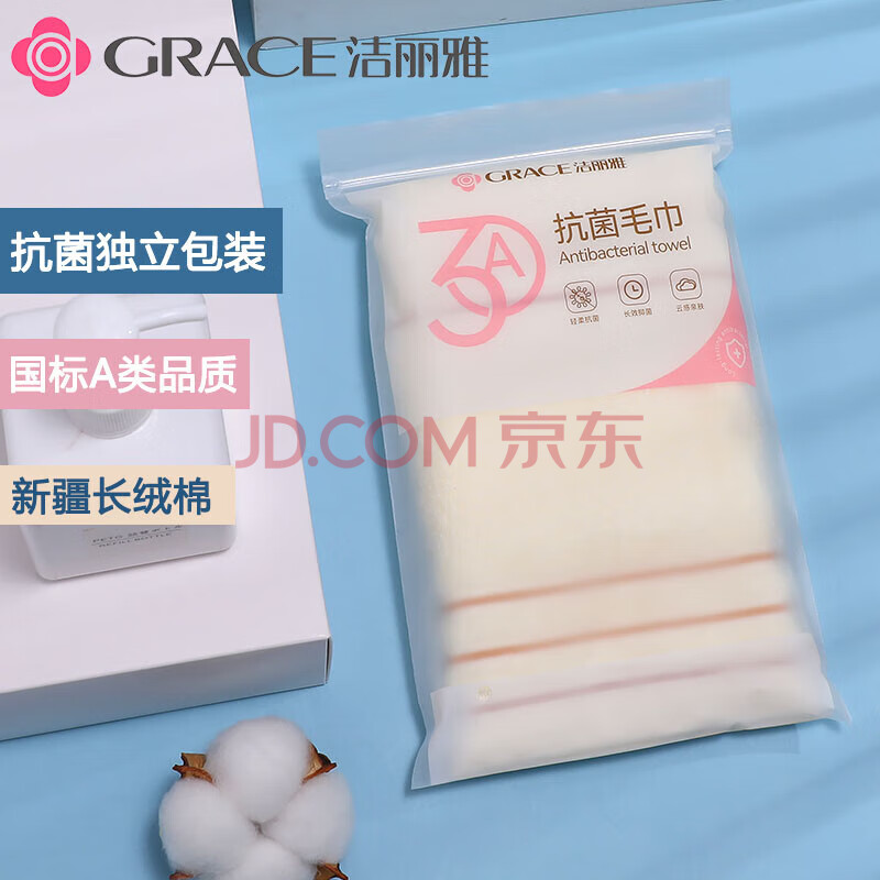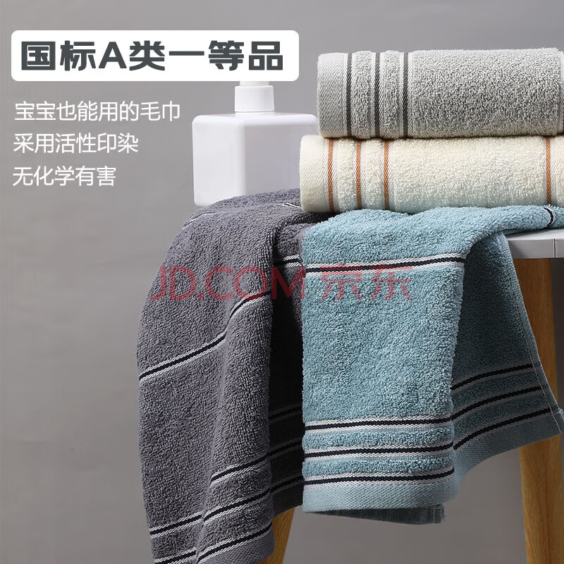商品相册:洁丽雅7A抗菌A类毛巾纯棉洗脸巾纯色简约条纹新疆长绒棉杏色单条70*34cm第