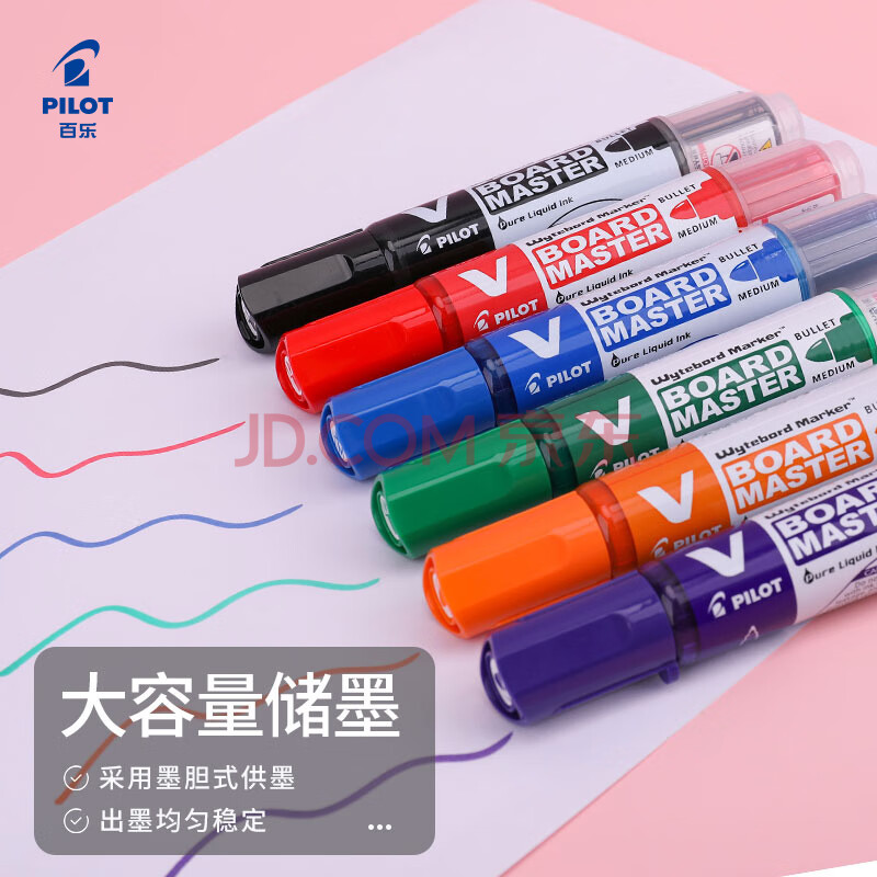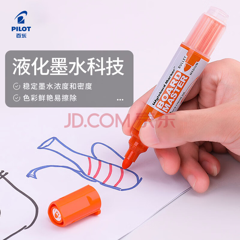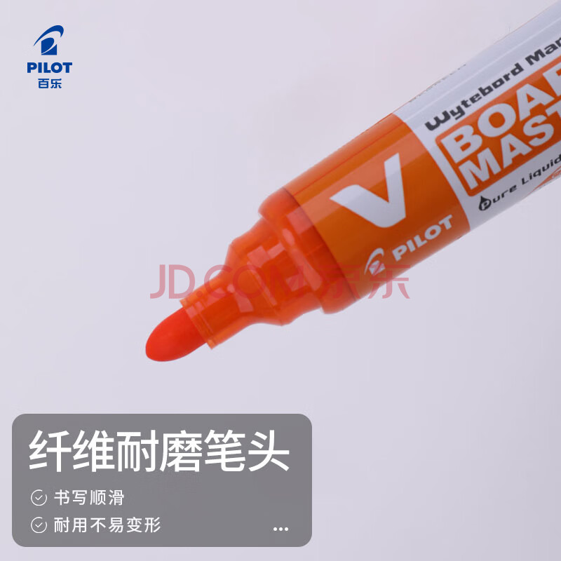 商品相册:百乐(PILOT)白板笔大容量V直液式水性可擦易擦文具用品WBMAVBM-M-O 粗杆 橙色第