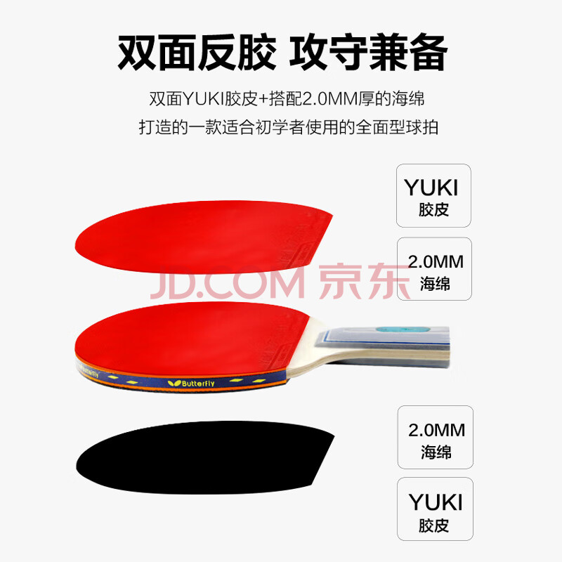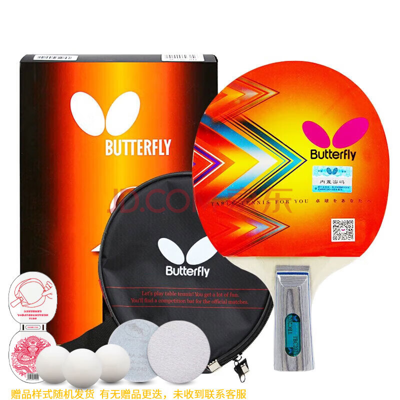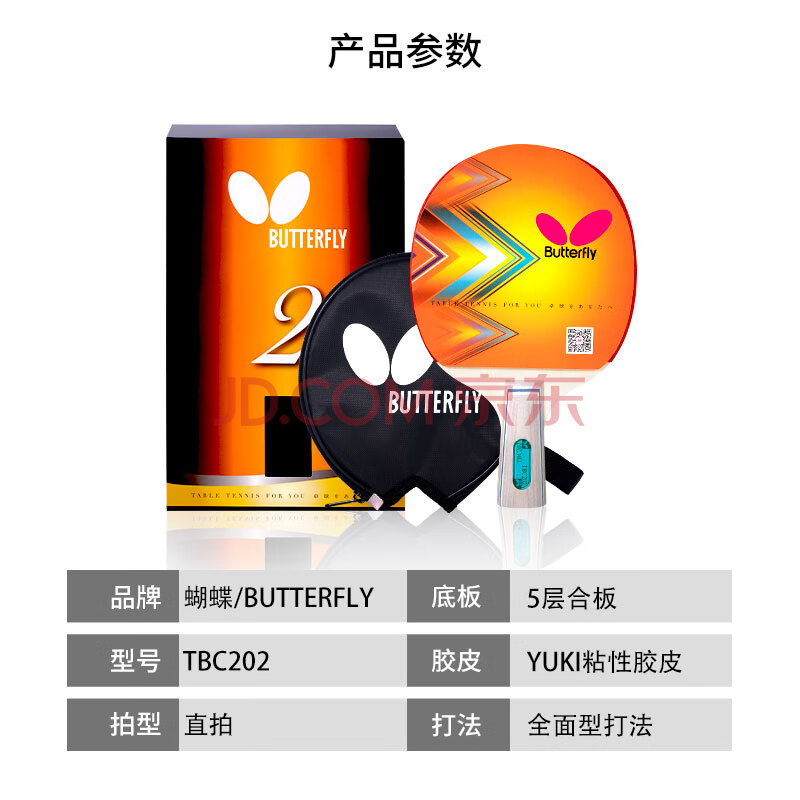 商品相册:蝴蝶(Butterfly)乒乓球拍直拍/短柄 双面反胶皮5层底板二星级兵拍202 含拍套第