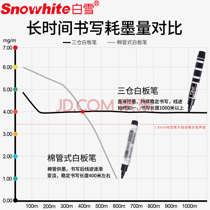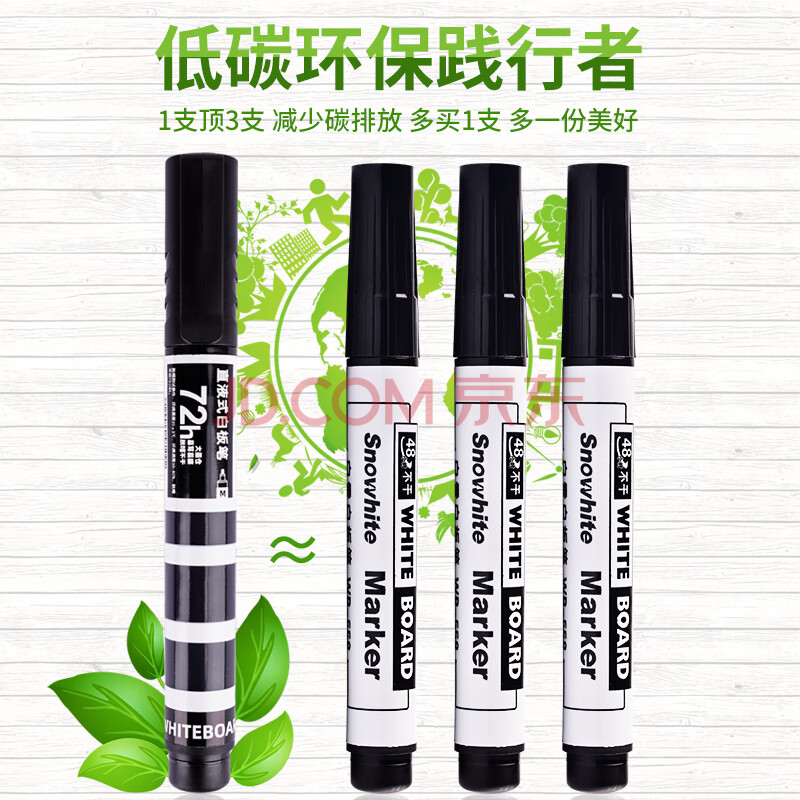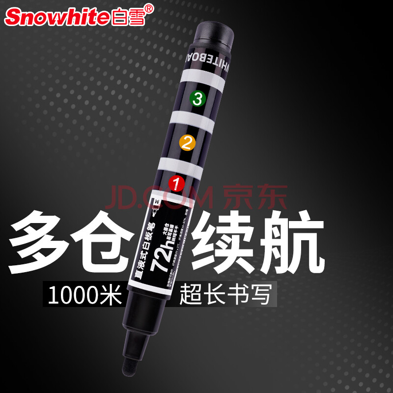 商品相册:白雪(snowhite)白板笔三仓巨能写直液式可擦 大容量易擦马克笔漂浮笔 办公用品会议记号笔 8支装 黑色 WB588第
