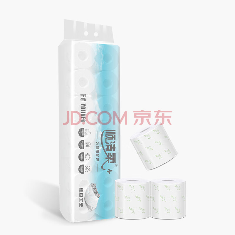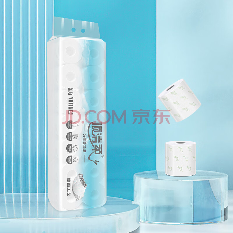 商品相册:顺清柔有芯卷纸5层107.1g*14卷 冲厕易溶解印花加厚卫生纸(1500g/提) 第