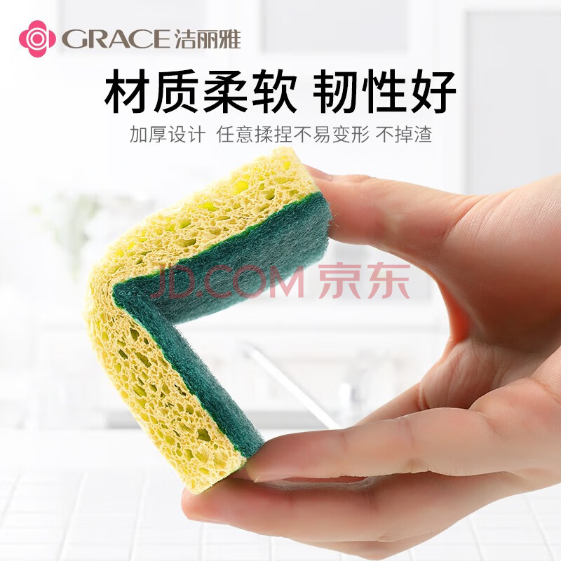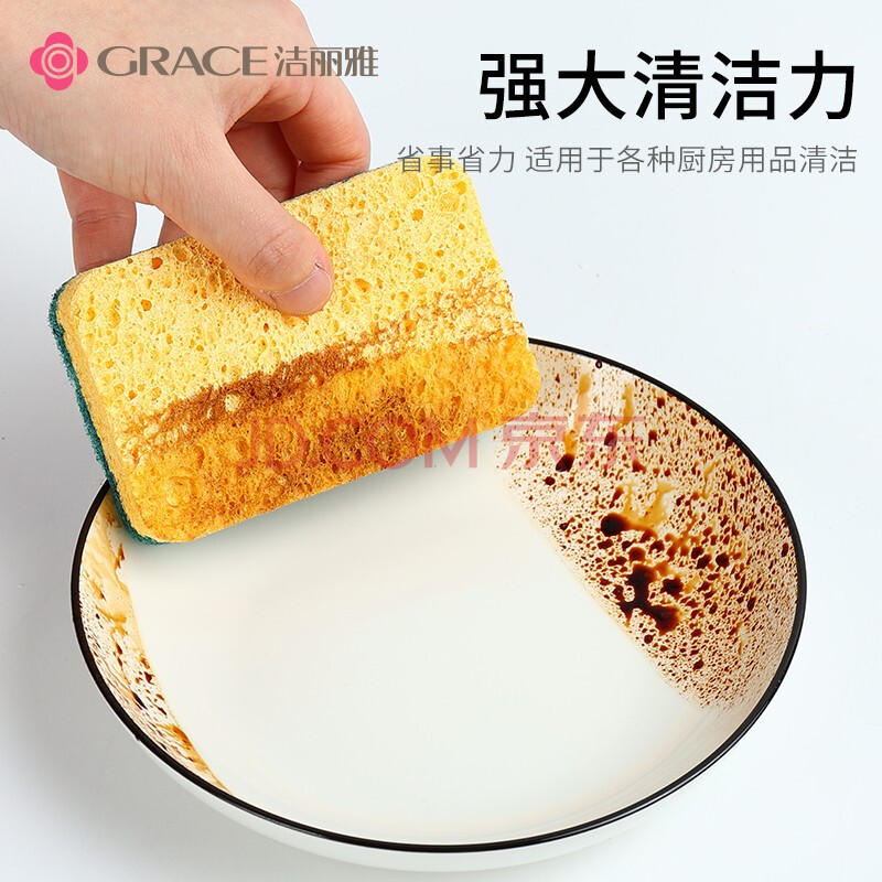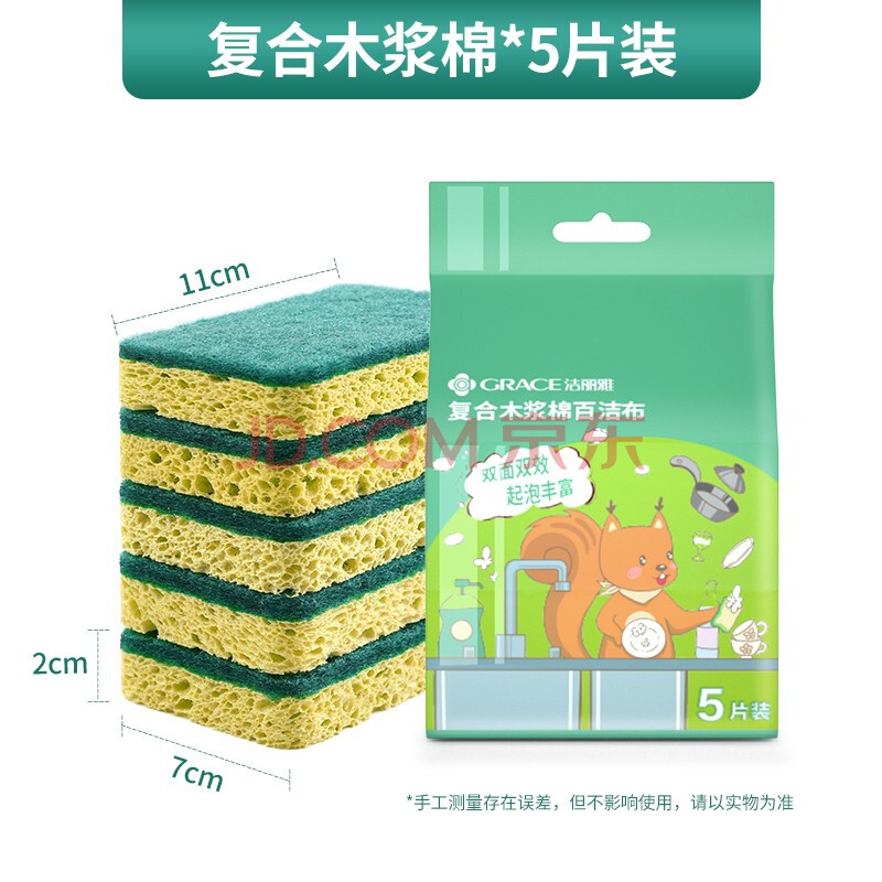 商品相册:洁丽雅(Grace)木浆棉百洁布11*7*2cm*5片厨房抹布海绵擦双面强效去油污第